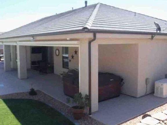 Single level new 4 bedroom or 3 bedroom plus office home with 15 by 30 heated Pool; porcelain tile floor, 3 car garage, custom stereo speakers in every room; security system, kitchen pantry, French doors, vaulted ceilings, 10 foot ceilings in every bedroom, granite counter tops, custom cabinets, dual oven, fans throughout, soaking free-standing tub in master; walk in his and hers closets in master; RV parking on side; fully landscaped and fenced; gas fireplace; two covered patios with electric outside sunshades; garage storage closets; central vac, immaculate. Please call me, the home owner directly at 435-467-2275. FSBO