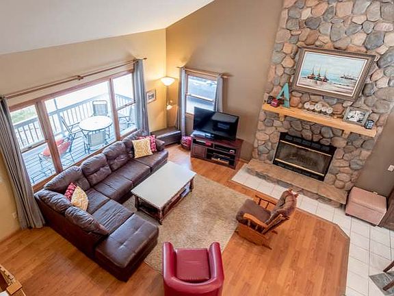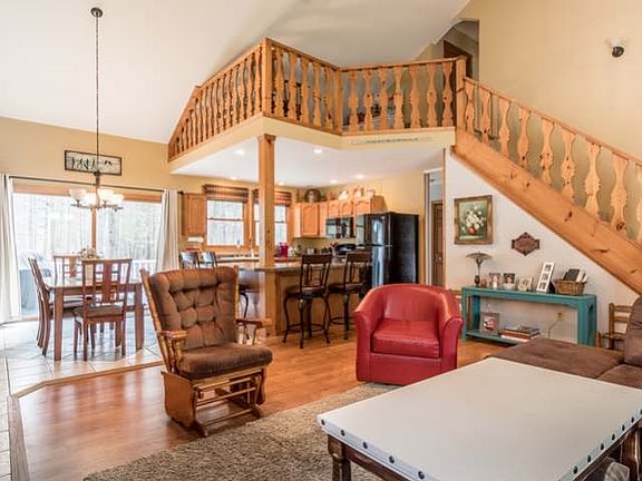 The enticing character beckons you the moment you enter the paved drive to this charming home. Greeted by the large, inviting covered porch. Impressive great room, featuring a beautiful floor to ceiling stone fireplace. Enjoy conversation with family and friends while preparing meals in the designer kitchen, w/ a walk-in pantry, recessed lighting & eat-in island. The 1st floor Master Bedroom suite boasts a walk-in closet, an updated bathroom w/ both a jacuzzi tub & shower & sliding glass doors to a private deck. The upper level provides 2 spacious bedrooms, a full bath, & a cozy loft area overlooking the great room. Full basement offers more space for a rec room, hobby room, laundry & tons of storage! Exit the sliding glass doors from dining area to the 12 x 24 deck, fenced back yard & firepit. The attached 2 car garage is appreciated year round. Many updates include new window coverings, faucets, water htr & sump pump. Close to shopping, schools, recreation, health care and commerce!