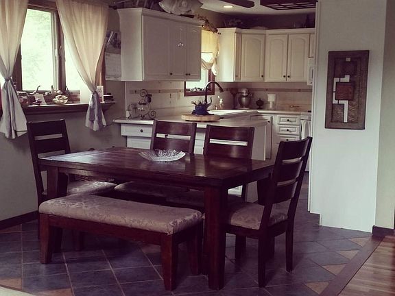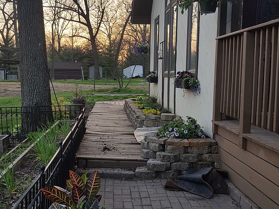 Custom built cedar home. Sits back off the road, with nice landscaping. 1.48 total acres. 4bd 2bath. Master suite with walk in closet, and private balcony. Has a two car detached garage, along with a 30x40 pole barn insulated, with electric and a wood burner. The house has an indoor wood burning system (and natural gas), and newer central air unit. The home has a complete wrap around deck upper and lower. The basement is a full finished walkout, with a huge bonus laundry room. Home has 2 sheds for storage. Lein off the back shed that is currently used as a horse stall. Electric fenced in front yard. Master bedroom with balcony is upstairs overlooking the woods. Many extras! All appliances stay!