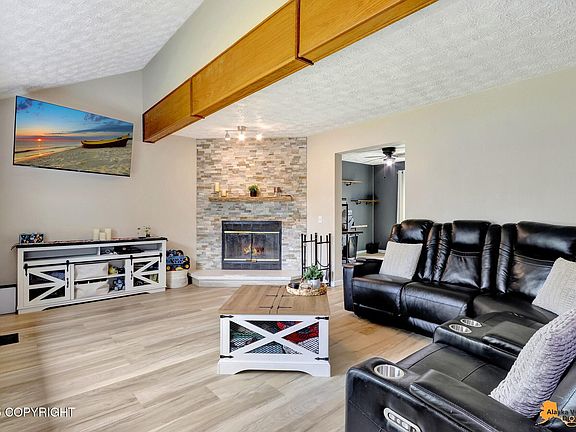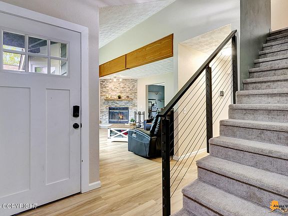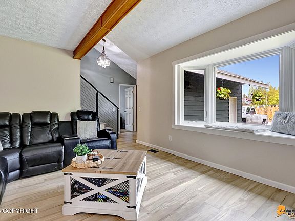 Step into this beautifully updated hm in South Anchorage! Enjoy new lvp floors, sleek modern cable railings, a new bay window that fills the space w/natural light, & stunning stone-surround fp. Outside, you'll find a fully fenced backyard w/ a lg deck, shed, & wide side gate perfect for RV parking. Conveniently located near schools and parks, this move-in ready home is truly a must-see!