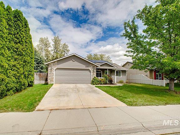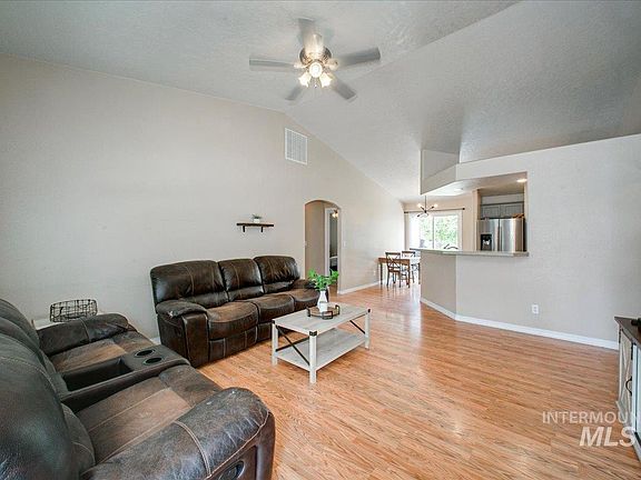 Turn-key, solar-powered, and full of charm—welcome home to South Boise! This well-maintained 3-bedroom, 2-bathroom home sits on a spacious 0.16-acre lot and includes a flexible 4th room—ideal for a bonus space, home office, or dream closet. Vaulted ceilings in the living room and kitchen bring in tons of natural light, while the split bedroom layout offers privacy and function. Enjoy a covered front porch, fully fenced backyard with a storage shed, and paid-off solar panels that keep energy bills low. The kitchen and bathrooms feature updated hardware, and the fridge, washer, and dryer are included, making this home truly move-in ready. You'll love the new furnace and A/C (2022), 2-car garage, and low $380/year HOA that includes irrigation. Minutes from freeway access, retail, and dining—this South Boise gem has the perfect blend of comfort, convenience, and efficiency. Easy to show—don’t miss your chance to check it out!