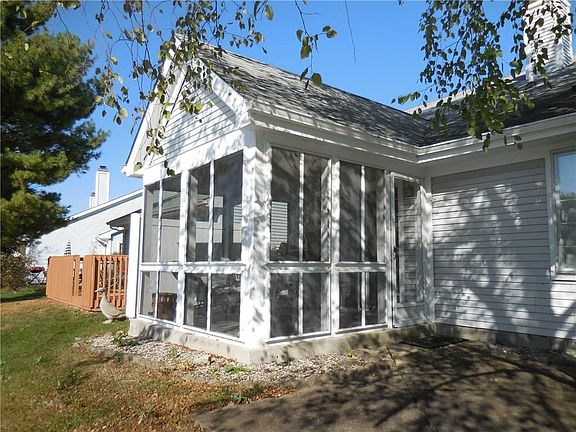 LOCATION, LOCATION, LOCATION! Charming home in Cape Cod Village--plus quiet cul-de-sac & relaxing lake! Dramatic Great Room w/2-sided fireplace, soaring ceiling, plantation shades & laminate floor. Dining area has two skylights, lots of windows overlooking lake w/plantation shades & eating bar. Kitchen boasts ceramic tile countertops, oak cabinets, brand new stainless steel appliances, pantry & patio door to 3-season Sunroom! Den off the entry would be perfect home office! Master Bedroom has fireplace, lots of closets & private bath includes double sinks & walk-in shower. Second BR is ideal for guests or hobbies. Laundry includes washer & dryer. Hall bath also has a tub/shower with oak vanity. Lots of updates just completed--SHOW AND SELL!