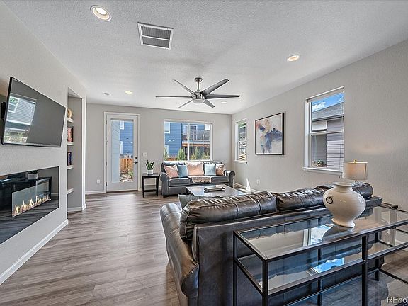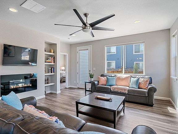Ideal Location, Ample Space, Total Functionality!! Thoughtful finishes and upgrades throughout including engineered wood grain laminate flooring extending from entry way to the open great room with electric fireplace, built-in shelving, room for dining, living and walls of windows bringing in an abundance of natural light. The gourmet kitchen is truly a entertainer’s dream with a large center island, granite countertops, subway tile backsplash, gas cooktop, 42” Birch cabinets, pantry and stainless steel appliances. The main living space continues with a laundry area with cabinets, powder bath and a main floor master with walk-in closet and gorgeous master bath featuring dual sinks with granite counters, and ceramic tile surround walk in shower with frameless glass door! The upstairs offers a small office nook area, two generous sized bedrooms both with walk-in closets and beautifully upgraded bathroom with dual sinks, granite counters and tub/shower combo. A full, unfinished basement with high ceilings allows for fantastic options for future finishing. Outside you have a fully fenced yard allowing for pets or private entertaining. Down the street from a community park, trails leading to open spaces and literally in the center of it all along major routes, minutes to the DTC, Southlands, Highlands Ranch, short distance to DIA, and equidistance from the Springs and Denver. Wonderful, low maintenance opportunity to enjoy better than new in the ideal location!