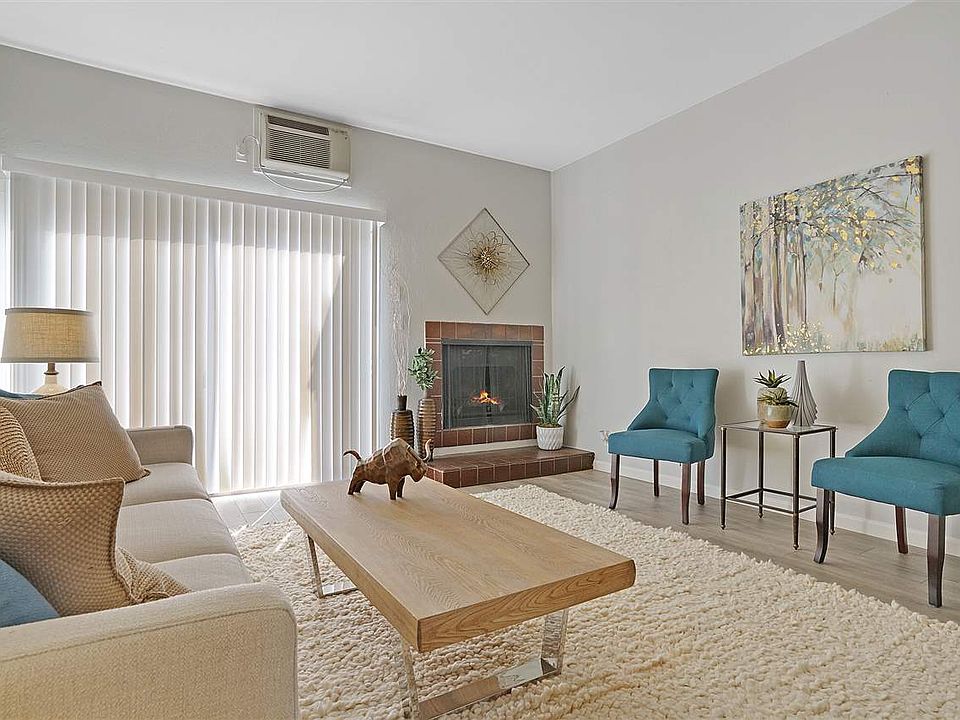 Charming complex with lots of amenities. Beautifully and completely renovated throughout, just move right in! This spacious condo offers two large bedrooms and two and half bathrooms, wood burning fireplace and a charming patio. This park-like complex includes a green belt throughout, large community pool, gym with sauna, and clubhouse for parties. The unit includes 1 dedicate carport space and guest parking. There is plenty of parking on the street as well. You will love the location. Easy access to freeways and walking distance to shopping and schools. No rental restrictions.