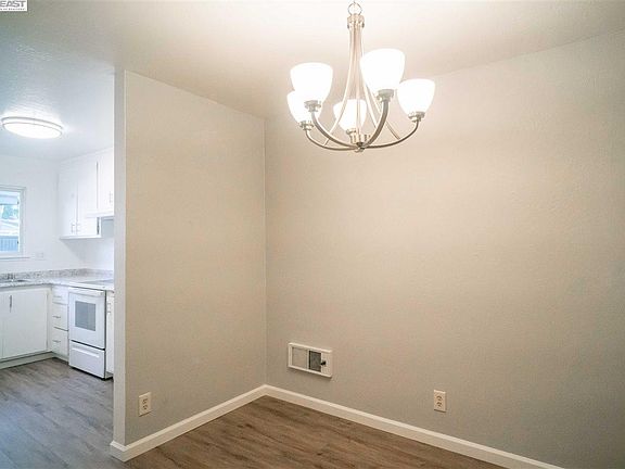 Very quiet location in the community. Kitchen with plenty counter top space and white cabinets and newer dishwasher and stove oven. Updated bathrooms with newer fixtures. New laminate floors throughout downstairs. New carpet upstairs. New A/C unit. Private patio perfect for BBQ. Community pool, gym and clubhouse. Easy access to I680. Close to shopping. Award winning schools. Community pool and gym. HOA fee also covers cold/hot water and trash removal.