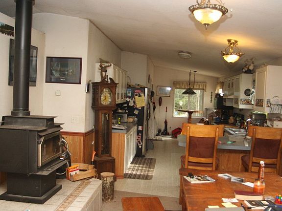 You will think this home is brand new! All new cabinets, new paint, vinyl and carpet, new vanities, new appliances, and much more. Large home on 5 acres with 2 grassy acres in the middle and woods all around the perimeter. Vaulted ceilings, well insulated, living room, family room and den, large utility room, wood stove, shop building, dog run & the beginning of a circular driveway.