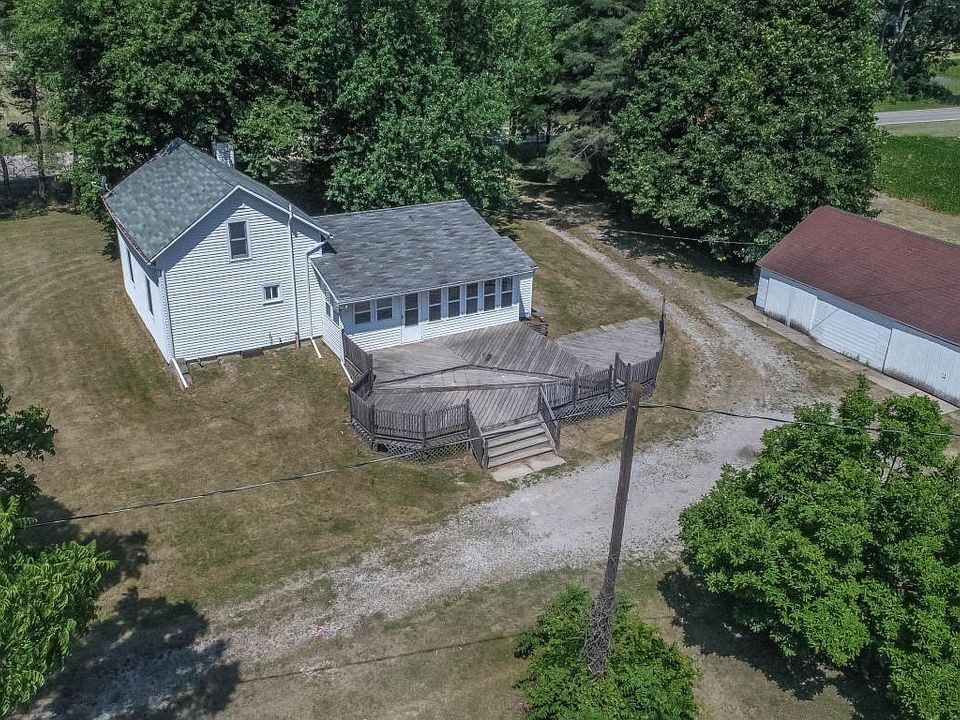 Great starter home in the country. First floor master bedroom, Brand new kitchen cabinet and countertop, newer kitchen appliances, new hard surface flooring in the kitchen and dining room. Large deck off the 4 season room, newer roof, and a 3 car detached garage. All this on 1.93 acres. Square footage includes 4 season room.