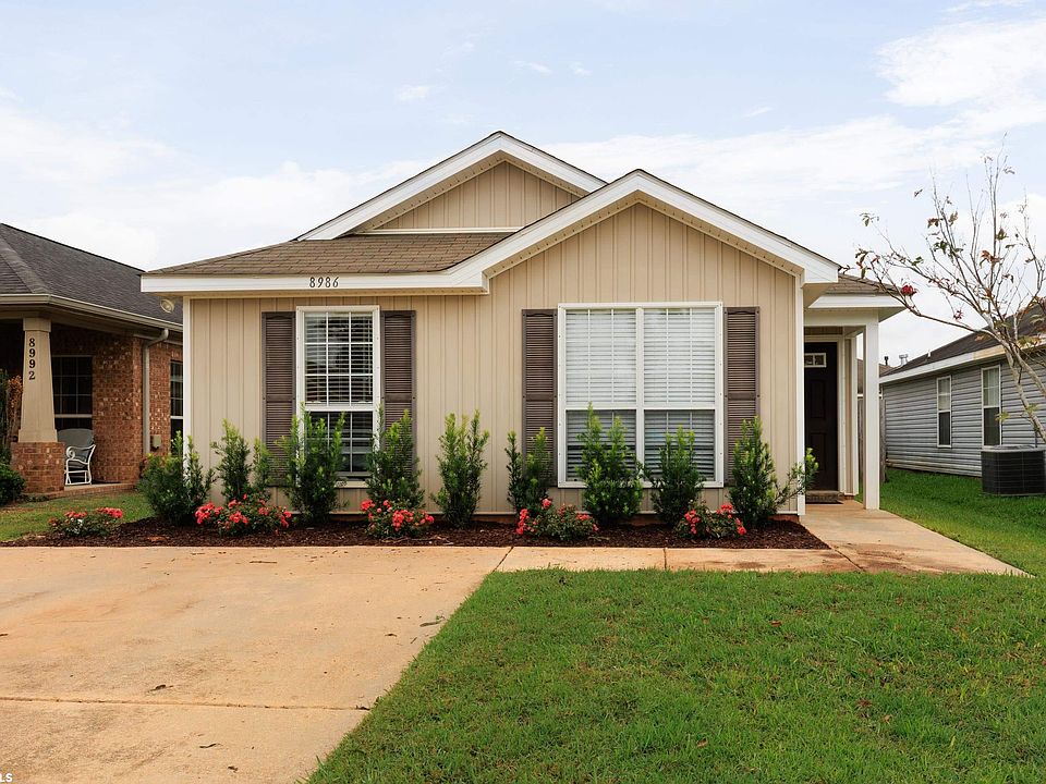 ***VRM: Seller will entertain offers from $185,000 to $205,000*** This charming 3 bedroom, 2 bath retreat built in 2010 is perfect for those seeking a low-maintenance lifestyle without compromising on style. Step inside and be greeted by the inviting atmosphere, thanks to the freshly painted walls and the brand-new vinyl peel and stick wood flooring that adds a touch of warmth and elegance. Per Seller, decorative shutters and front door to be freshly painted before close. Split bedroom plan with two bedrooms at the front of the house and a sizeable primary with attached bathroom and walk-in closet at the back of the home. The cozy level backyard is a hidden gem, offering a peaceful oasis for relaxation and entertainment with a covered rear porch. Conveniently located in the highly sought-after West Mobile area, this cottage offers easy access to a variety of amenities, including shopping centers, dining options, and recreational activities. Schedule a viewing today and let yourself fall in love with the charm and convenience of this West Mobile gem! *Listing Agent(s)/Brokerage do not guarantee the accuracy of square footage and descriptives. Buyer(s)/Buyer Agent to verify.*