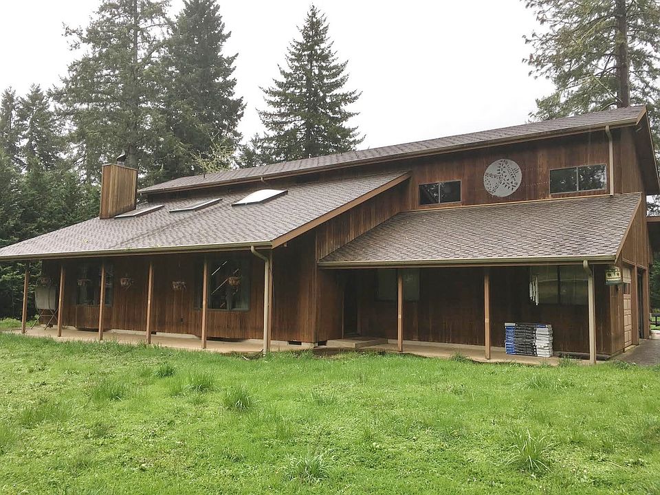This custom home was designed as a ski chalet, features vaulted ceilings, a huge rock fireplace wall, skylights, and firewood storage room. Formal dining and living, office, mud room, plus walk-in pantry. 2-car garage with an additional large shop features 15-ft truck style roll-up doors and a concrete floor. There is also a small barn with 3 stalls and some cross fencing. Great home for a horse/hobby/animal enthusiast! Hot tub excluded