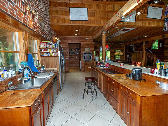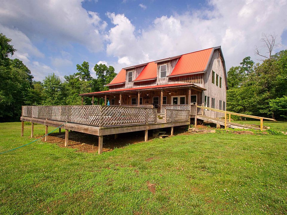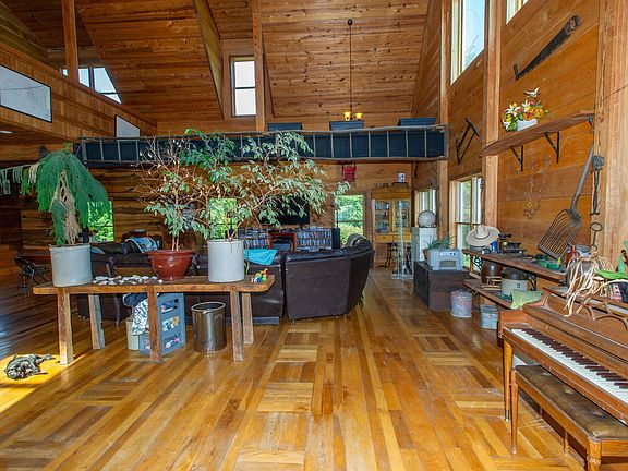 Quiet and private rustic style home sits on nearly 17 acres and has 2 ponds. Currently the home has 1 bedroom but there is plenty of room to add additional living space with a total of 3000 square feet including an unfinished walkout basement. The kitchen features commercial grade appliances and butcher block countertop. The upstairs bathroom features a walk-in tiled shower and a jacuzzi tub as well as double vanity. The covered wrap-around porch is perfect for enjoying a morning cup of coffee while observing the abundant wildlife. Property also features a stick frame, Amish built 5600+ sq. ft. building with (5) 14' CHI insulated doors plus (1) standard size door, 3-zone heating and air, 400 amp service, full bathroom and office space, (2) storage lofts, and a large entertaining area with custom built bar. There is tremendous potential to make this your dream home.
