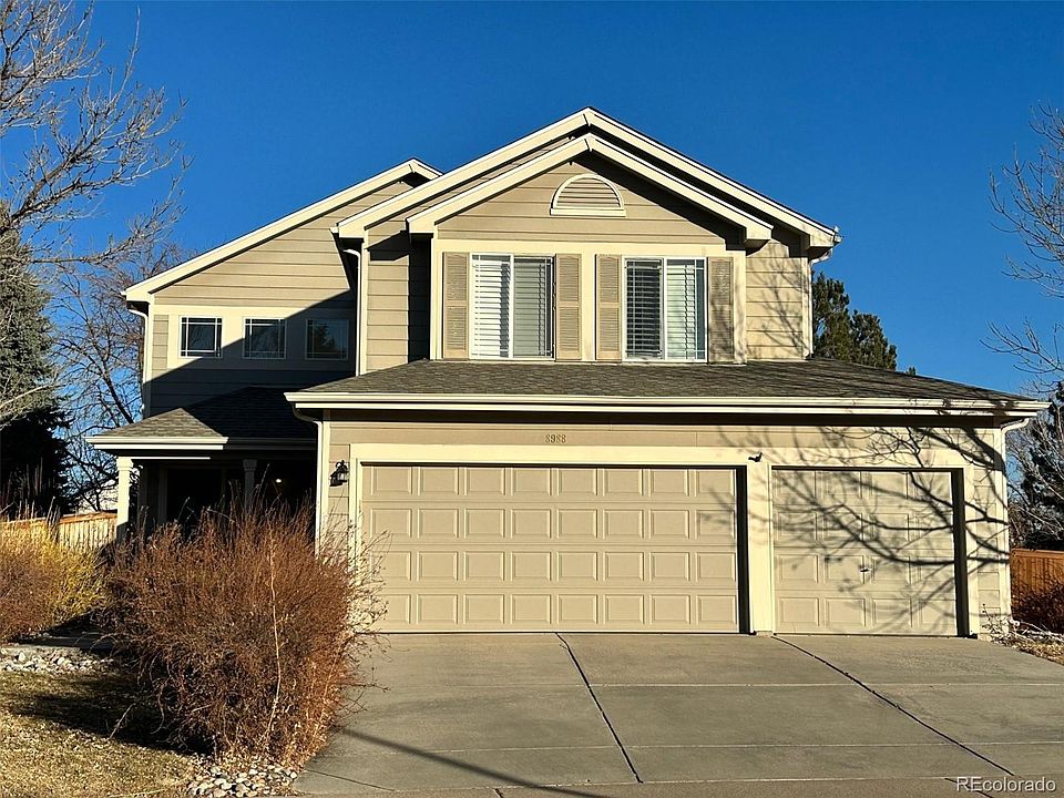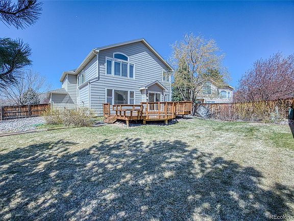 Former model home in the Province Center! Original Owner! This immaculate home has been recently updated, so you can move right in! This home is flooded with sun and natural light! The main level has a soaring two-story living room and dining room. The family room has newly refinished hardwood floors, a cozy fireplace surrounded by display shelving and overlooks the expansive back deck and yard. The kitchen has newly refinished hardwood floors, stainless appliances and a large breakfast area. The kitchen flows to the family room and to the back deck. A bridge leads to the spacious primary bedroom with a vaulted ceiling, en-suite bathroom with a large walk-in closet, dual sinks and plantation shutters. Two additional bedrooms are on the upper level with plantation shutters and window seats. The hall bath has tile floors and is clean and bright. Located on a large corner lot, the oversized 3 car garage is a bonus. The unfinished basement is waiting to be customized to your personal tastes. Recently remodeled in 2024 with new interior paint, refinished hardwood floors, new range and microwave, new screens, and radon mitigation system. New rear fence and deck stained in 2023. The beautifully landscaped large yard, has mature trees and an expansive deck. Perfect for entertaining and your summer BBQs! Enjoy two large neighborhood parks with playgrounds, large fields and picnic areas. Close to several large shopping centers, restaurants, fitness clubs and numerous stores. Easy access to downtown, DIA and Summit County. Showings start 4/25/2024.