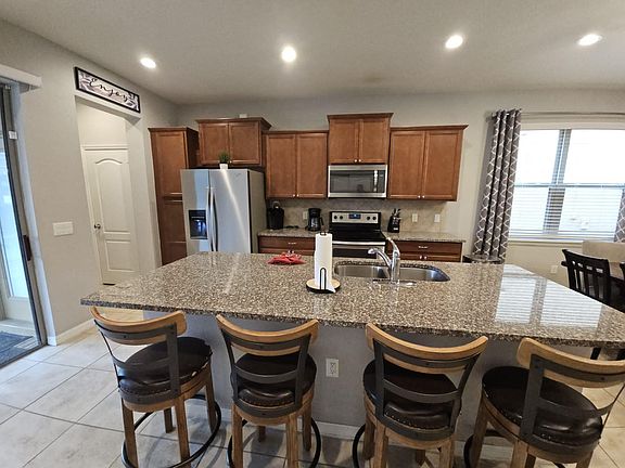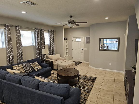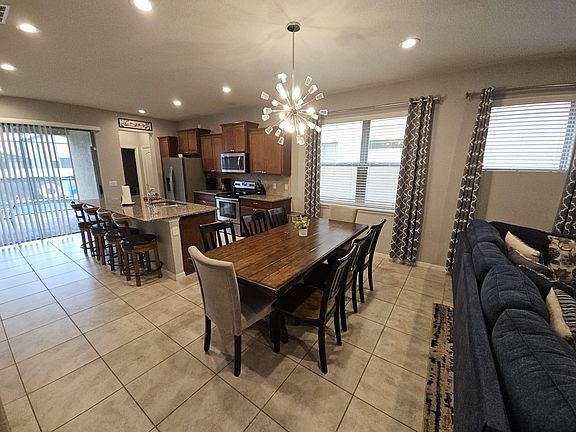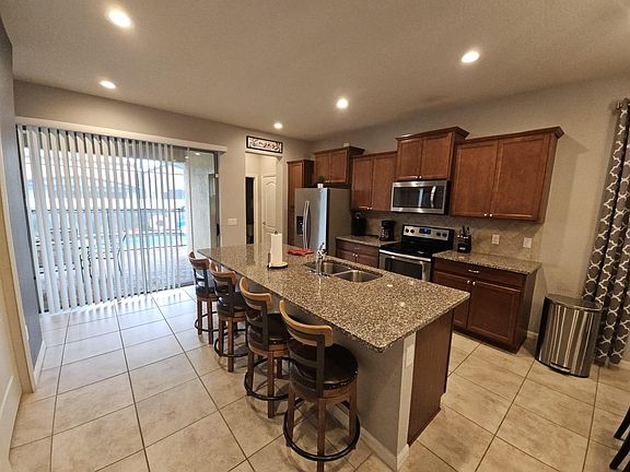 Welcome to our elegant fully-furnished home in the gated Windsor at Westside community, a mere 10-minute drive to Disney. This home is exclusively available for long-term rental, no subleasing is permitted. The home features a practical layout with 5 bedrooms, including two master suites one on each floor for added convenience. The additional 3 bedrooms share 3 full bathrooms, providing plenty of space for everyone. Please note, the 2-car garage has been converted into a playroom, offering additional space for entertainment or relaxation. Outside, the screened area includes a private heated pool and, perfect for relaxing in privacy at any time. Residents have access to outstanding community amenities, including a 10,000 sq.ft. clubhouse with a modern fitness center, a large pool with a splash area and a lazy river, a Tiki Bar, and more. For sports and recreation, there are volleyball courts, a multipurpose sports court, and an arcade games room. The on-site tu Casa Bar and Lounge, as well as the Market and Deli, offer convenient dining options. Renter is responsible all other utilities and association fees This home is ideal for those looking for a long-term place to live near Disney, with a wealth of amenities that cater to a comfortable and enjoyable lifestyle. Min 6 Months
