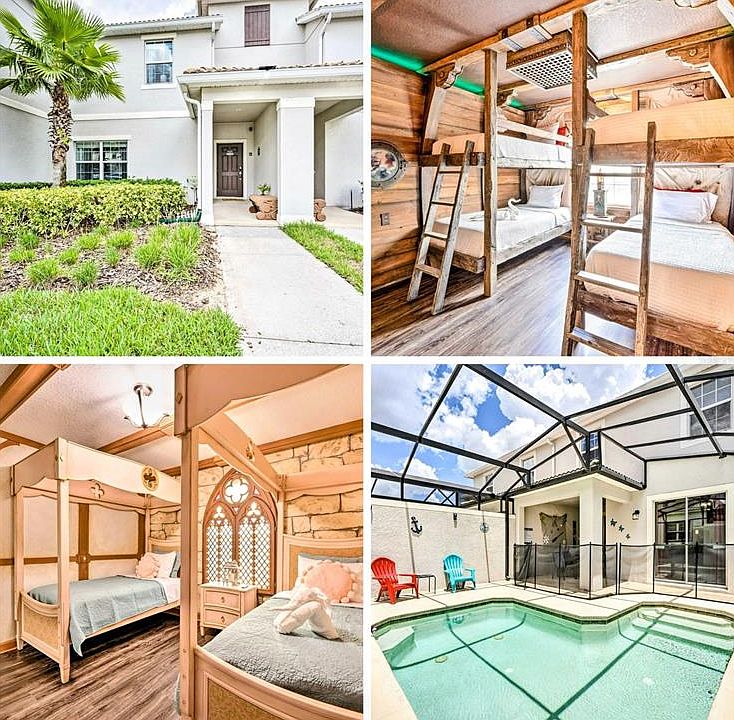 PRICE DROP! SERIOUS SELLER! If you love Disney then you will love this place. Themed rooms to thrill guests and resort style amenities to enjoy in the community. Active short term rental sold fully furnished. Highlights: 4 bed, 3 bath, themed rooms, screened in patio with private pool and bbq grill, tv's throughout, fully stocked kitchen. It's a 5 minute walk to The Oasis Club House: PICKLEBALL COURTS! Restaurant, bars, pool, lazy river, water slide, volleyball, game room, gym, and even a movie room. And a beautiful golf course. Parking is never an issue here. Plenty of spaces just a few steps from the front door.