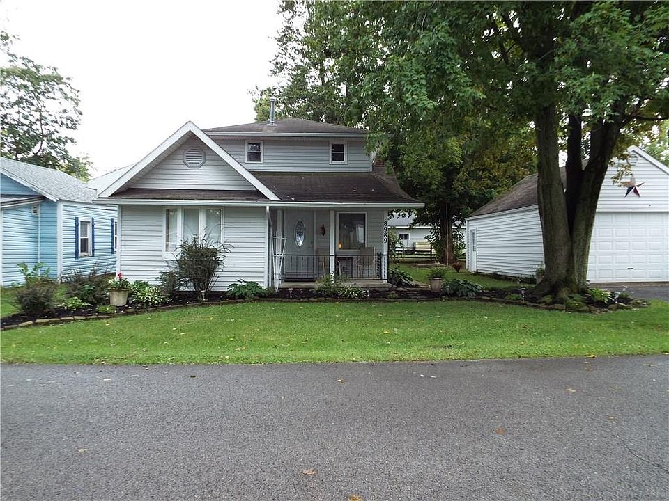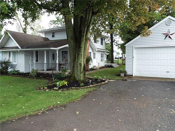 Located near the lake, rental boat docks, and Russells Point Village. Ideal for week end retreat or full time living. Totally remodeled downstairs with new open floorplan. Updated kitchen with newer appliances, updated bathroom. Downstairs master bedroom accommodates a king size bed. Large dining area. Gas range. double door refrigerator. Separate utility room with washer and dryer, and water softener. The outdoors invites you to relax on the deck, garden area available, storage building plus room for pool (also available for sale). Detached 2 car garage has electric and gas. Gas heater for garage is not connected but will remain. Large home attic space available for storage with closets.