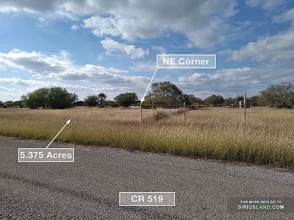Level, partially-cleared 5.375 acre rural lot within walking distance of swimming, boating and fishing at Lake Corpus Christi. No restrictions, so bring your mobile home, tiny home or RV. Or build your own site-built home, cabin, barndominium, etc. Remains of old mobile home on property (no title, no value). Short drive to all the activities the Texas coast has to offer. Priced BELOW tax-assessed value! Come take a look today and imagine all the possibilities. - 5 min to shopping and dining in Mathis, 30 min to Beeville, 37 min to Corpus Christi - Electric: Available on property - Water: Well on property, condition unknown - Sewer: Septic needed Approximate GPS coordinates for boundary corners (lat, long): NE: 28.094995, -97.854933 NW: 28.095930, -97.857967 SW: 28.095336, -97.858203 SE: 28.094447, -97.855317 * Property lines on satellite images are approximate. * Seller is the owner, not a realtor. Scroll down to Property Owner to find my contact info. * No appointment necessary for showings. Will work with buyer's agents. * Buyer or Buyer's Agent to confirm utilities Directions: Address: 8989 CR 519, Mathis, TX 78368 From Mathis, head northwest on E San Patricio Ave. Turn left onto S Aransas St. Turn right onto W Wilson St. Continue onto CR 4 / CR 704. Turn left onto CR 519 / CR 6. Property is 0.6 miles down on the right.