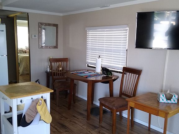 Park model home in 55+ gated community. Unit is partially furnished, has a large deck, parking for one vehicle, additional parking available through park. Park offers postal service, gym, pool, hot tub, library, bocce courts, pickleball courts, and clubs for activities/crafts. Close to transit, dining, shopping, the loop, and Saguaro East Park. Water, sewer, trash are covered, renter is responsible for electric and propane. Non smoking and no pets allowed. Must be 55+ or approved by park. Carport for parking, one car, possibly two small cars. Tenant is responsible for weed control around unit. Lease is for a minimum of 6 months or 12 months with possible renewals.