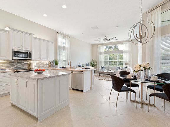 No Turnpike Noise - Partially Furnished - 3 bedroom + Den Lydia model w/Impact glass windows. Approximately $50,000 in upgrades including, 24x24 rectified tile floors, Arctic Silestone quartz countertops in the kitchen, with Frosty White Dominica cabinets and a glass tile backsplash. The master bath includes Snow White granite countertops and Antique White Dominica white cabinets.