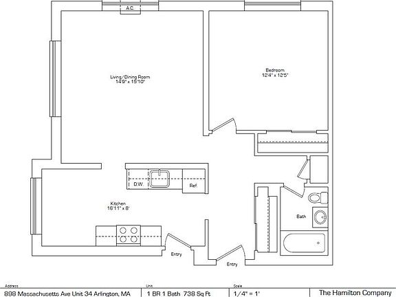 This 738 square foot apartment home has 1 bedrooms and 1.0 bathrooms. This home is located at 898A Massachusetts Ave #4B, Arlington, MA 02474.