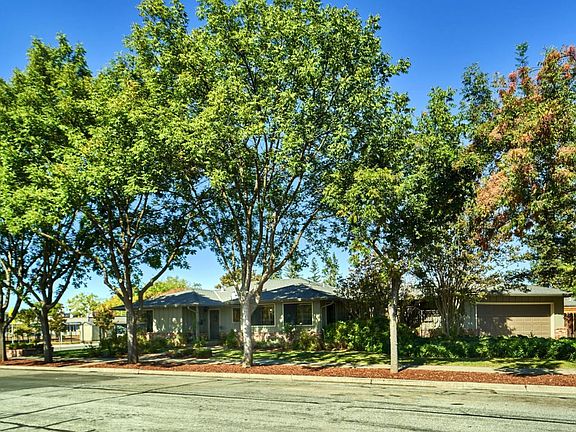 Single story home framed by mature tree lined streets, rose bushes and a lush landscaped large corner lot with alley access. Light and bright, kitchen with granite slab counters, tumbled marble back splash, Viking gas range with 6 burners, griddle and double ovens, dishwasher, microwave, refrigerator, large wine fridge, recessed and pendant lighting, garden window and skylight. Hardwood, tile and marble flooring. Living room with 2 large picture windows. Family room with stone fireplace, lighted ceiling fan and a large slider out to the covered back patio. Office with corner windows. Laundry room with washer, dryer, freezer, half bath and a door out to the breezeway and garage. Master bedroom has a lighted ceiling fan, good sized closet and window and an en-suite with dual sink vanity and stall shower with glass surround and dual shower heads. reverse osmosis system, water softener. Covered back patio, Raised garden bed, raspberry bushes, artichoke plant and lawn.