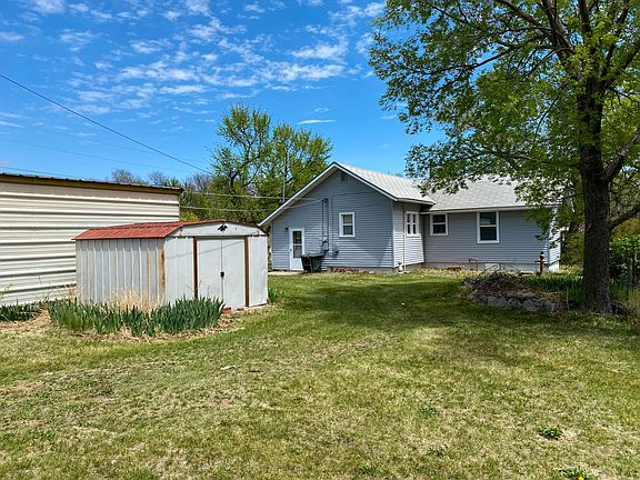 Situated on a corner lot with mature trees is this affordable home. Buyers will enjoy the two car detached garage, updated windows, and replacement vinyl siding. The back yard is large and allows for additional off street parking if needed. Outdoors you'll have the space to relax on the front porch or the side patio. A tool shed provides storage for all the yard equipment. The main floor of the home has two bedrooms, living room, bathroom, open dining/kitchen area, and laundry room. The basement could provide an additional non-conforming bedroom and storage area. Appliances will remain with the home. There are two window ac units and three warm morning gas heating units.