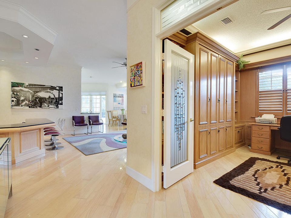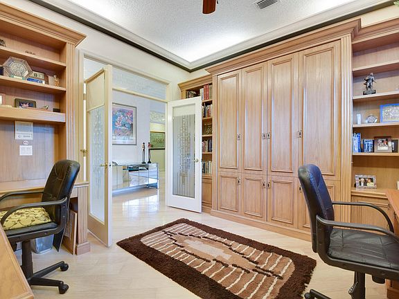 Augusta Pointe a Gated Community in PGA National. 3BR/2.5BA/2CG on Oversized Lot, CUL-DE-SAC w/ Gorgeous Solid Oak Floors, Large Master Suite & an Oversized Screened Patio w/ Water View. Upgrades Include: Granite Kitchen & Built-In Bar, Crown Moldings, Generator, R-40 Insulation, Built-In Closets, Hurricane Shutters & Shield Film. Extended Family Room, 3rd BR is a Wood Paneled Built-In Office w/ Queen Murphy Bed & French Doors w/ Etched Glass. Originally built by an Interior Designer as their own home. Impeccably Maintained. $574,000.