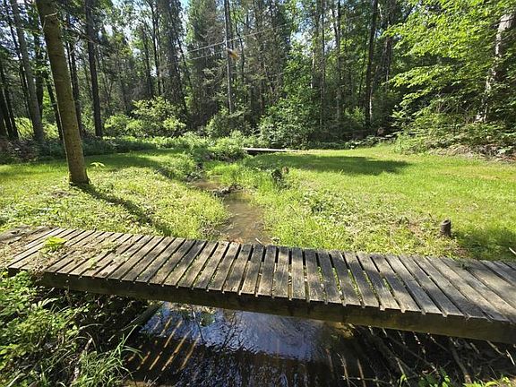 80+/- Acres... Towering, girthy, mixed-species timber with a meandering stream on the eastern portion, with two bridges to cross. Somewhat rolling, with many flat areas, multiple elevated blinds and food plots, and an extensive, maintained trail system. Rustic full-log cabin with covered porch and detached garage. There is an old water well/pump in the basement; however, it is in unknown condition. Electric is not currently connected; it does run through the property, thus it should be easy to acquire. Corners state land on the southwest. Fronts both Bills Road (paved) and Kneeland (dirt) which are county-maintained roads. Elmer Township, no zoning. **All information herein is deemed accurate but is not warranted.**