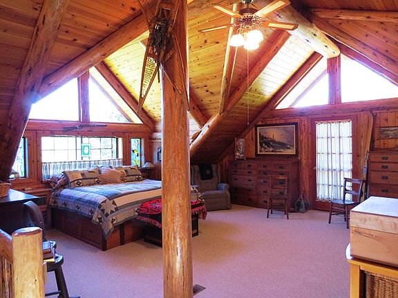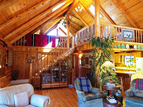 Gorgeous custom log home on 10 acres with stunning views of the surrounding mountains. Motivated Sellers! This 3 bedroom 3 bath log home has a warm lodge feel & open floor plan. There are 2 master suites. The log home is all master-craftsman Montana fir & Homestead log design. The main level features open dining & living room with gourmet kitchen & first Master suite. Beautiful hardwood floors throughout. The upper level is a second master suite with office/sitting area. The lower level features the huge office & third bedroom. The park like grounds feature a year round picturesque pond. There are a number of out buildings and the 1000 sq ft workshop with 12 ft ceilings with an additional inside RV garage... awesome! There is a darling gardening shed with extra parking garage adjoined. Gentle sloping pastures, 2+ acres irrigated grace the front of the property & behind the home are 7 managed timber acres. This is a very inviting & attractive property that has been lovingly cared for. Free internet is a plus!