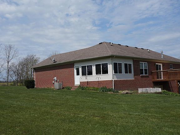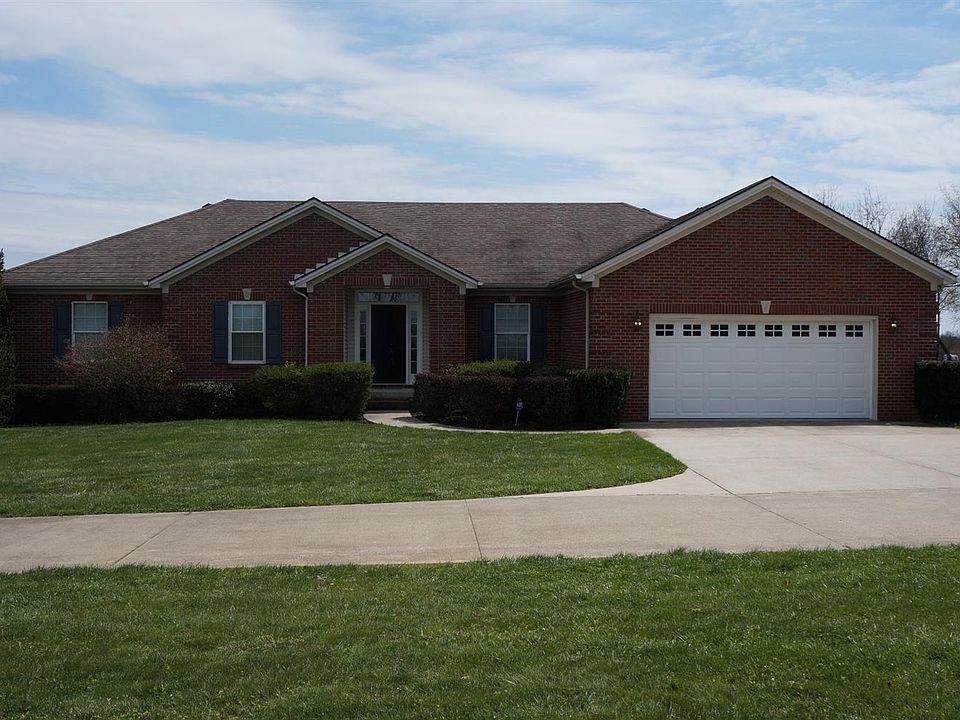 Location is a bonus with this full brick home that is a custom build by Marcus Moore. On five acres and just minutes to Lexington, Winchester or Paris. Built in 2000, it has four bedrooms, 3.5 baths, two kitchens and 3 garages. The cherry cabinets and light hardwood floors are beautiful. The eat in kitchen has easy access to a sun porch and a deck that over looks the beautiful 5.82 acres of bluegrass. A fabulous utility room with a utility sink is close to the kitchen. The walkout basement has a kitchen and another area for a washer and dryer. Bring your horses and or other animals to this piece of property that also features a pond. Make an appointment to see this house today!