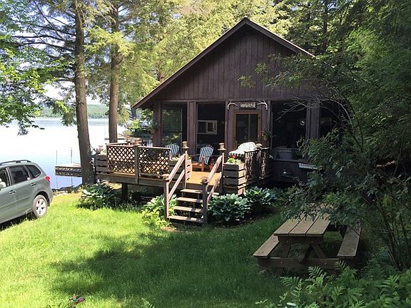 At the waters edge, this three bedroom, one and a half bath cottage offers an excellent Adirondack lake experience. Enjoy morning coffee on the screened in porch, or wonderful sunsets on the open deck overlooking the lake, and Owls Head Mt. Sit around the woodstove on those cool fall evenings, or take your boat out from your own private dock and fish for the elusive large mouth bass that Long Lake offers. The property offers over 150' of lakeshore with a lovely sandy beach, a place for a fireplace, and a level area for extra parking or a small garage. This is an exceptional cottage close to town, with a great location on the lake. Listed below assessed value! $399,000!