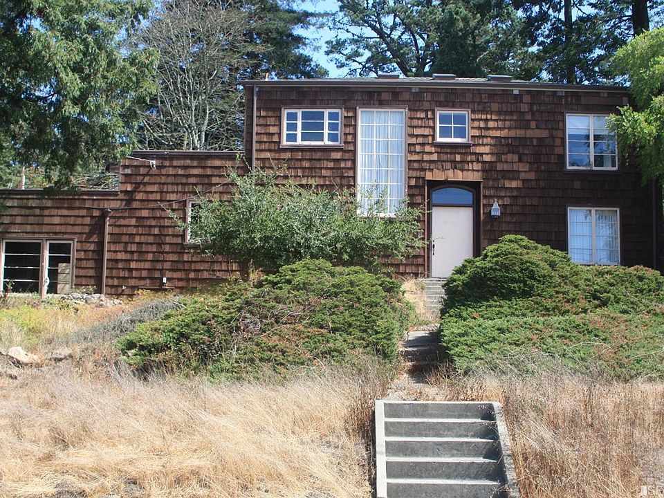 Situated on a substantial corner lot high in the Berkeley Hills, this is a rare opportunity for someone to update this superb brown-shingle fixer. 4BR/2BA up, including a large master suite, and one more BR & BA down. First floor also has LR, FDR, FamRm, eat-in kitchen, and laundry area. FDR opens to a long brick patio along the east side. Hardwood throughout, including custom parquet and herringbone. High vaulted ceiling at entry lets in tons of light. Closets everywhere. Partial basement. 2-car detached garage w/ a long gravel driveway affording ample guest parking. Views of SF Bay, GG Bridge, and Bay Bridge. Needs work, but upside potential is significant in this gracious neighborhood.