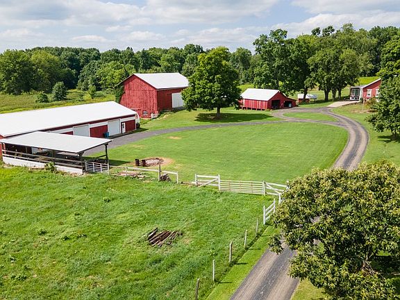 This Brick home situated on 45 acres features a 5+ bedroom, 3 full bath, and 2 half baths. Master bedroom and bath on main floor plus two additional main floor bedrooms. Fully equipped kitchen and formal dining room with fireplace and there is also enough room in the Great Room for a large dining room table. Great room also has a fireplace. Spectacular four-season room with view of the pond. Main floor laundry. Walk out basement with kitchen, dining area, full bath, game room, and potential of two additional bedrooms. Outbuildings include bank barn, corn crib, and enclosed machinery shed. There is a gas lease with minimal royalties that will transfer to new buyers.