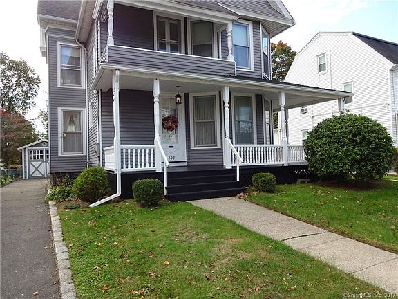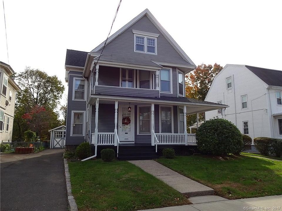 Perfectly sited in the Stratford Center neighborhood within walking distance of restaurants and the train station, this classic Colonial with period details has a welcoming wide front porch and level fenced backyard great for entertaining or relaxing. In between there is over 2000 square feet of well cared for living space including a large eat in kitchen with new refrigerator. There are hardwood floors in the spacious formal dining room, living room and family room. A half bath, including laundry hook ups, completes the main level. Two staircases lead to the second level and the 3 large bedrooms and updated full bath There is also a comfortable balcony sitting area accessed from the second level. The attic includes heated rooms previously used as a home office and also offers plenty of storage. Home also features a standby Generac Generator Stratford has numerous recreation facilities including its own par 3 golf course at Short Beach Park, and includes multiple sparkling sandy beaches on Long island Sound. This home is in move in condition and sold 'as is'. It presents a wonderful opportunity to make it your own! The generator is included.