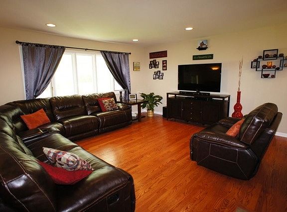 * Updates * Location * Size * Value ... Hurry home! Remodeled open design with updated island kitchen, baths, appliances, light fixtures, hardwood floors, carpet & neutral decor. 3 BR''s with ceiling fans, 2 full baths, huge family room with fireplace, & finished basement with home theatre rm & rec rm. Side apron extra car parking. Newer siding, roof, furnace, A/C, some windows & more. Full fenced yard & big patio!