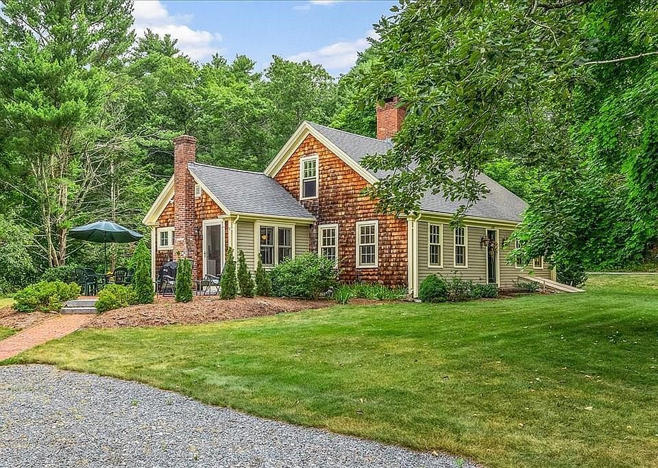 Beautiful 3 bedroom Antique Cape, circa 1770, located on a private 1 acre lot. This home has been lovingly and meticulously restored, featuring original details throughout, including wide-plank pine floors, 4 fireplaces, beamed ceilings and built-ins at every turn. Open kitchen and family room offers plenty of room for entertaining along with a formal dining room for those special holidays with family. First floor bedroom is currently being used as TV/office room. Located on the second floor are two large bedrooms with plenty of natural light, beamed ceilings and each with its own full bathroom. Enjoy relaxing this summer on your patio overlooking your spacious yard. Antique barn and storage shed gives you plenty of room for storage. Property has 2 driveways and a 2 car garage. This house has so much charm, character and history! Close to schools, shopping & beaches. Easy highway access. Included in sale, an additional 1.26 acre parcel across the street with conservation restriction.