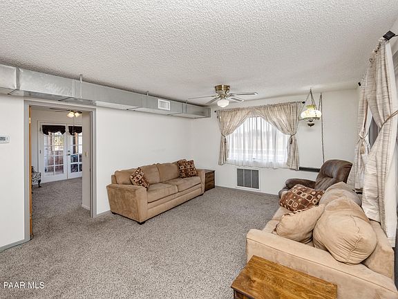 Welcome to your Home on the Range! This is a 1988 Single Level 2BD 1BA 1232sqft Home with detached 1 Car Garage, Loose Box on N side of Garage for small animals, 2.49 level acres with spacious Living Room/Dining Room areas, Carpet with Vinyl Flooring in Kitchen & Bathroom, Large Bedroom opens via Double French Doors to Covered Sun Porch with Greenhouse Window on the south side, Greenhouse & Chicken Coop on property! Roof on Home & Out Buildings replaced in 2017, Exterior Paint in 2017, Central Air Conditioning/Heat Pump, 18 Panel Owned Solar System, 2,500 Gallon Cistern/Water Delivery, Water Catchment System for watering the yard and garden. Fenced area between the home & garage, plenty of room to create your mini ranch, Horses OK! Easy access to Hwy 89 & Williamson Valley Rd. No HOA.