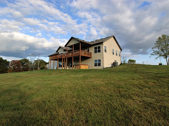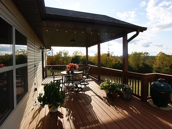 This gorgeous custom 3 bedroom, 2.5 bath home on almost 14 acres has rustic charm that's echoed throughout the home. From the open floor plan with two stone fireplaces, open beam raised ceilings, lighting, cabinetry, doors, and flooring to the stone accented kitchen island. It's perfect for entertaining with a great room, huge family room, formal dining room, covered porches and a partially covered deck. The back deck overlooks hundreds of wooded acres for you wildlife watchers. The huge master bedroom has two master closets, a master bath, and an additional area for your plants, a newborn, or an office space. You might consider closing off the formal dining room for a 4th bedroom or office. For those of you needing a place to store your extra vehicles and toys, the 30' x 40' outbuilding is an added bonus. There's also an attached 3 car garage and John Deere room. The home is at the end of a dead end road and sets back off the county road. There's plenty of room to build additional outbuildings if needed. The creek in the bottom usually runs year round and is a great place to watch deer or have a picnic. The 3 car garage is an additional approx. 900 sq. ft. All measurements are approximate. Buyer's Agent and Buyer to do their own due diligence.