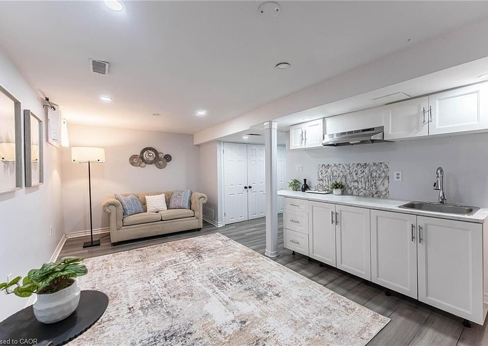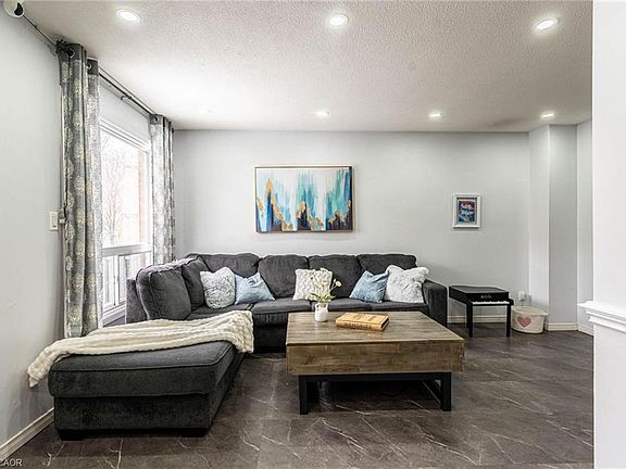 Look no further! This is your ticket to stress-free, easy, low maintenance living and it comes with the FIRST 6 MONTHS NO CONDO FEES while you get settled in! A bright and beautiful END UNIT townhome, fully finished including a FINISHED BASEMENT equipped with an elegant kitchenette and second full bathroom. Basement and main level are both freshly painted. New basement windows have been ordered and on its way! Conveniently located with easy highway access for commuters and close to all major amenities. New pot lights (2024) on the main and basement levels provide ample light throughout both levels. Stainless steel appliances in kitchen (stove and range hood - 2024). New vinyl flooring added to main level (2024) and basement (2023). Fully finished basement features a 3-peice bathroom (shower addition - 2023), basement kitchenette (2023) new flooring (2023), and new dryer (2026). Garage with inside entry. Lastly, don't worry about any monthly internet and cable bills as they are included in the monthly condo fee. (Approx $150+ value). Don't miss your opportunity to join this family-friendly complex!
