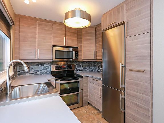 Beautifully updated town home! End unit with quiet private location, and mountain views. The kitchen is a designer's dream featuring high end cabinetry, stainless steel sink, stainless steel microwave, oven, range, refrigerator, and dishwasher, ceramic back splashes, tile floor, and high end lighting. The bathrooms are all similarly updated. The home has been freshly painted, has new carpet installed, and a new deck. Just take one look at the photographs!