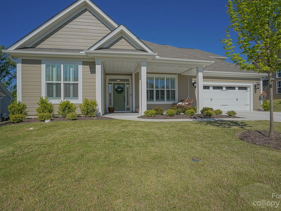 You will FALL IN LOVE with this gorgeous, main level living home designed in one of Niblock's newest & desirable floorplans, THE BELLHAVEN. Beautiful curb appeal including an inviting covered porch ready to relax on. Featuring upgrades throughout which include 12 ft ceilings, custom decorative walls, plantation shutters, remote control blinds, decorative blinds, coffered ceiling and a large multi-slide door that expands your living space into the covered patio, fireplace, kitchen with an extra large island, stainless steel appliances including countertop range and double wall ovens, granite countertops, plenty of cabinets, dedicated dining space, office/ flex space with double french doors, primary BR with a tray ceiling , en-suite with oversized ceramic tile, large semi frameless shower, 2nd br with en-suite and walk in shower & closet, half bath off the foyer , upper level has 2 br, loft, 1 full bath with 2 separate vanity rooms & storage. Garage has extra height & width.