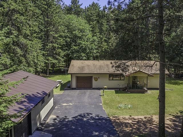 Reasonably price 2 Bedroom home is in an ideal location - close to the area's shopping, restaurants, clinic's, hospital & all amenities. The open concept kitchen and dining room and the heated 4 Season Room make entertaining effortless. There are also 2 nice sized bedrooms and an updated bath with a walk-in shower. A full basement provides plenty of storage space and this home has been nicely maintained including a newer furnace and water heater. The attached 1 car garage with a black top driveway is a great convenience AND there is the bonus of a detached garage with an insulated 24x28 workshop. A large landscaped yard is bordered with mature trees and can be enjoyed from the covered front porch. This is a great opportunity to own a year-round or vacation home in the great Northwoods at a very affordable price.