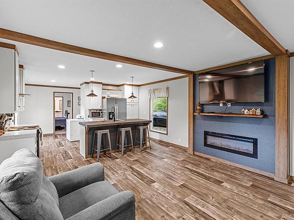 Electric fireplaceBeautiful kitchenStainless steel appliancesLarge storage buildingKitchen island seatingRoad frontageMud room