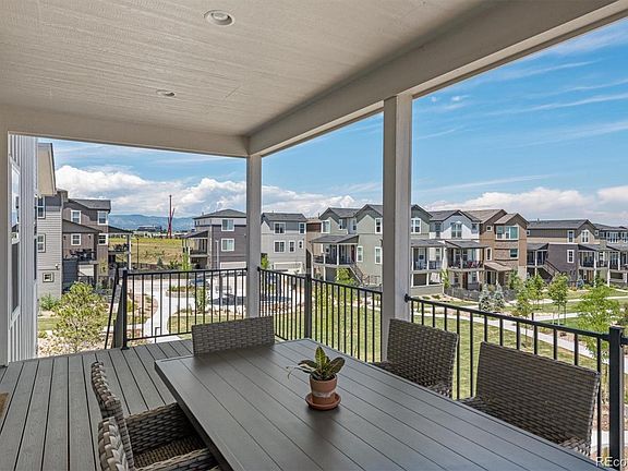 Hot new listing in the Crescendo at Central Park! Fantastic location - interior lot with no busy streets, next to the community park and greenbelt. Enjoy fabulous mountain and sunset views! Walk to Central Park green space, Starbucks, UC Health Hospital, Old Chicago, Rock Bottom, lots of dining entertainment options, Target, Natural Grocers, Orange Theory Fitness and so much more! Explore nearby amenities such as the Highlands Ranch Golf Course, the Highline Canal, Highlands Ranch recreation/social facilities, tot parks, miles of trails and Town Center with additional shopping options. Stellar schools provide a great learning experience. Several outdoor living spaces and two over-sized decks bring you outdoors for the summer. This stunning home is picture perfect. One visit will convince you! Each space flows gracefully into the next in this smart floorplan. Nine-foot ceilings, laminate flooring and huge windows define the home. Kitchen ingredients include upgraded 42” on-trend, white cabinets, quartz counter tops with tile backsplash, a huge island/breakfast bar and a GE stainless steel appliance package. The cook will appreciate the gas cooktop, walk-in pantry and spacious dining room appointed with a distinct chandelier. There are endless possibilities for dressing up the living room. Massive windows allow for great light and views. A two-sided fireplace is shared with the adjacent home office. The upper level hosts a versatile loft and three bedrooms. Take a look at this exceptional master suite with a smartly upgraded walk-in closet and luxurious five-piece bathroom graced with quartz countertops and 12” x 24” tile flooring. An upper-level laundry room is convenient with a closet, shelving, hanging bar and folding table. The Samsung washer and dryer are included. You’ll find ample space for a home gym or work bench in the three-car tandem garage. There’s additional storage in the mechanical room and the crawl area underneath. This home will suit buyers with the highest standards! Another TESTA-monial.