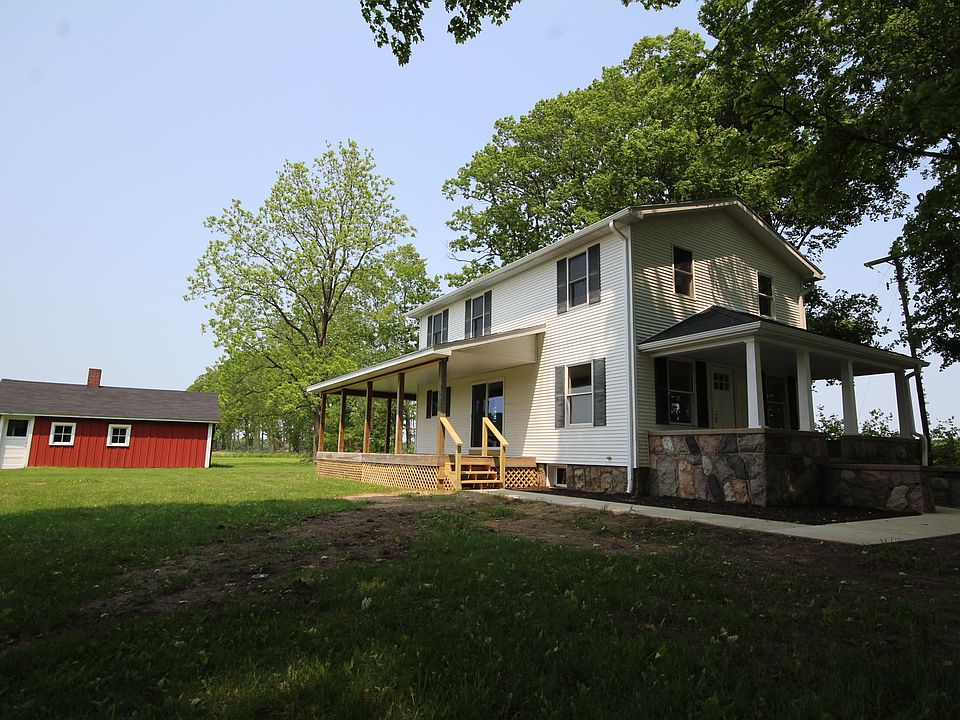 1 Acre, quiet country setting and Vicksburg Schools! You'll love the 450 sq. ft. wrap-around porch and open living room/kitchen/dining area with sliding glass door. Ceramic tile flooring, side-by-side refrigerator and Frigidaire range in spacious kitchen. Main floor laundry and bath with shower. Open stairway with oak trim leads to 3 bedrooms including the large 10.4 x 17.7 master bedroom with ceiling fan and 2 closets. Upstairs bath features 2-sink vanity and ceramic tile flooring. Roof shingles new April 2019. Thermopane replacement windows, 200 amp electric service, 4'' diameter water well and water softener. 14.3 x 34 garage plus 2 accessory buildings. Enjoy this fine home and convenient country location today!