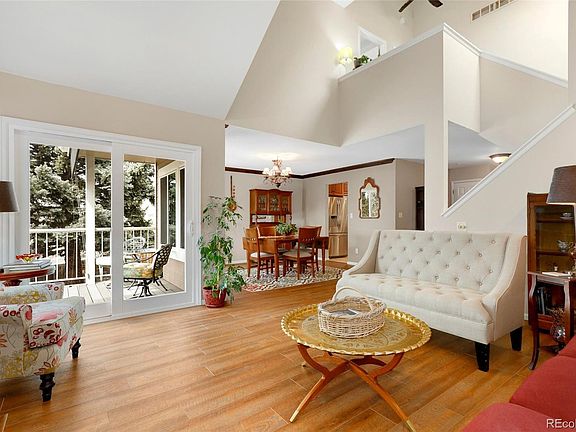 Explore this light and bright 3 bedroom/4 bathroom/home office updated home in Highlands Ranch. First there is an expansive landscaped front yard (owned by HOA) that is 100% maintained and cared for by the HOA and artificial turf in the back yard. No yard work! With a large flagstone porch with pergola and sunshades, this beauty exudes Southern charm. The non-traditional layout of the home offers several amenities. The upstairs floor has a generous sized owner's suite, with walk in custom closet and a full bath with spa shower and soaking tub. A non-conforming bedroom makes the perfect home office for zoom calls, office work, and privacy. The second full bath is also a laundry room, a marvelous convenience addition to the second floor. The main floor has a gorgeous living room with vaulted ceiling, fireplace, and an intimate cozy dining room with balcony for morning coffee with sunshade. The kitchen offers custom cabinetry, granite countertops, barstool height counter space, Italian tile and stainless-steel appliances that convey. Completing this floor is an informal sitting area with built-in shelving and full-length picture windows with wooden blinds that convey as well. The basement level includes a spacious living space with 2 walk-out access sliding doors to covered paver patio, back yard, and a full bedroom and bathroom for the optimal guest or family suite with privacy. Another non-conforming bedroom, lots of storage cabinets and shelving that convey, and a full washer and dryer laundry space completes this level. Both sets of w/d included. Easy access to University Blvd and E470 for an easy commute, the community pool and greenbelt walking trails to Northridge Rec Center, this home makes for a complete package. No showings on Friday, May 12. Please schedule showings after Noon on Saturday, May 13th.