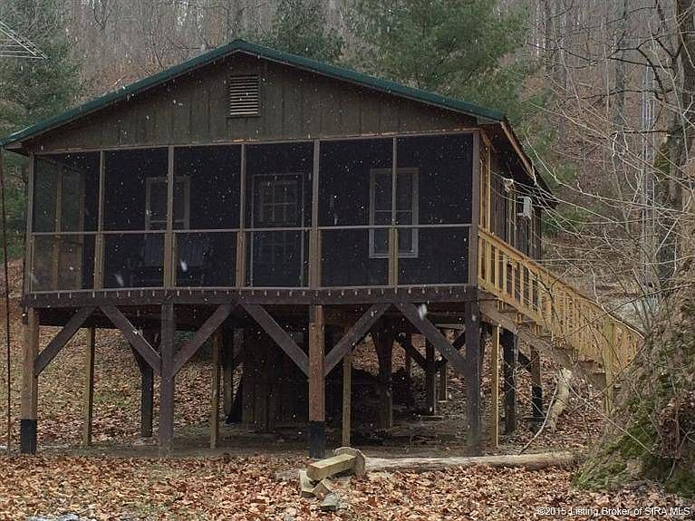 Hunters Paradise! This 17.3 acre wooded property features a 576 sq ft Cabin and Storage Barn. Electric Heat, Window Ac, open kitchen living room with a bedroom and bath. Interior is partially finished. Has Electric, Patoka Water and Septic.