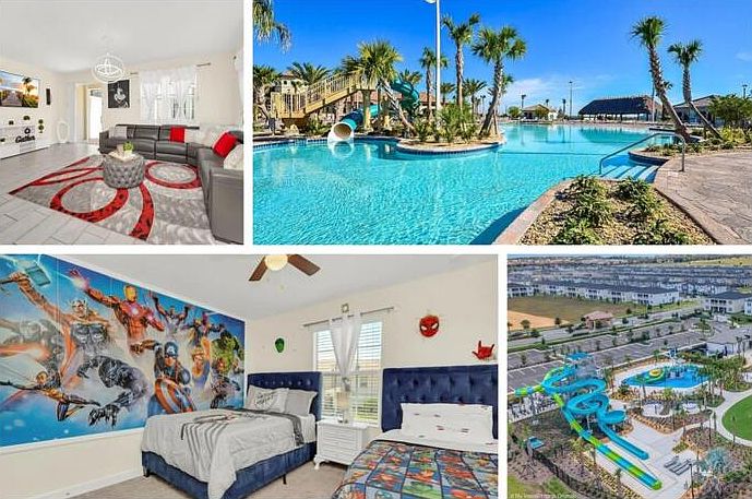 This property is a corporate rental. Please note that the monthly rental price for this property is dynamic and subject to seasonal adjustments. For an accurate quote, provide us with your intended move-in and move-out dates. Welcome to your dream townhome, where comfort meets contemporary cool. Enjoy a fully equipped kitchen with a breakfast bar, dining table, coffee machine, and ice maker for those fancy drinks. Relax in the open concept living area with a plush couch, large Smart TV, cable access, DVD player, stereo, video game system, board games, and books. **Bedroom Configuration** Master Bedroom: California King Bed + Ensuite Bedroom 2: Two Full Size Beds + Ensuite Avengers Bedroom: Full Bed + Twin Bed Beach Bedroom: 2 Full Size Beds Toy Story Bedroom: Full Size Bed + Twin Bed Need extra sleeping space? A queen air mattress is available. When the weather isn\'t ideal, retreat to our sunny lanai with a small heated pool and lounge furniture, perfect for relaxing with a chilled drink. **Resort Amenities** Whether it\'s sunny or not, you have access to two clubhouses nearby: The Oasis Club and The Retreat Club. Pools & Hot Tubs: Dive into outdoor pools, relax in the hot tub, or let the kids enjoy the splash area. Sports: Play sand volleyball, basketball, tennis, or golf. There\'s also a fitness center and aerobics room. Entertainment: Kids can watch movies in the theater or play in the game room, while adults catch up on work in the business center. Shuttle service within the resort makes getting around easy. **Nearby Attractions** Your Orlando adventure awaits with these nearby attractions: Disney World: 15 min drive Universal Studios: 26 min drive SeaWorld: 26 min drive Aquatica Orlando: 25 min drive **Other Things to Note** You will have exclusive access to the property, ensuring privacy and enjoyment during your stay. Full Access: Enjoy all the appliances and amenities in your rental. Pool Heating is $30/Day Grill: Available for $120 / stay. Includes: delivery of propane tank and cleaning. Self-Check-In: Convenient self-check-in with a smart lock. 24/7 Support: Contact us anytime for assistance to make your stay delightful. **Suitability** Accessibility: A half-step is required to enter, with bedrooms and a bathroom on the 1st floor. Handicap Accessibility: A designated handicap spot with an accessible ramp is available. The 1st-floor bathroom includes an assist grab bar, and a toilet support rail can be installed upon request. **Additional Amenities** Washer & Dryer (because even superheroes need clean capes) High Chair (for the little ones) Pets Allowed (with a $100/Pet Covered Parking for 5 Vehicles & Free Street Parking (First-Come, First-Served) **Additional Rules** To ensure a stress-free and pleasant stay, please follow these house rules: Check-In/Out: Check-in starts at 4 PM and check-out is before 10 AM to prepare for the next guests. No Smoking: We maintain a strict no-smoking policy, including vaping and electronic cigarettes. No Parties/Events: To maintain a peaceful environment, no parties or events are allowed. Thank you for cooperating to create a pleasant and safe atmosphere for everyone. Pack your bags and get ready for the vacation of your dreams! Contact us to schedule a showing.