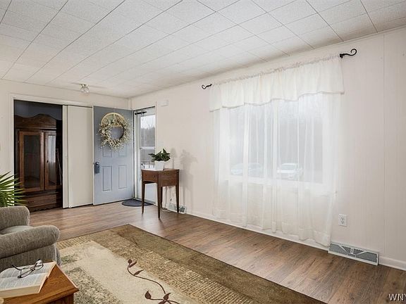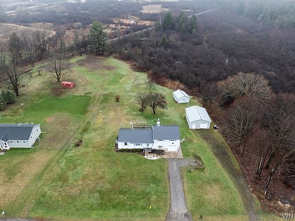 Pride of ownership is evident throughout this home that has had only one owner. Everything you could want or need is right here on this peaceful country road! Very spacious home with room to roam. 3 bedrooms with wood floors, 2 baths, den, 1st floor laundry, living room with luxury vinyl flooring and large picture window to let the beauty of the outdoors in. Sunk-in family room with stone-woodburning fireplace to cozy up next to on chilly days. Large eat-in kitchen with abundance of cabinets and counters. Sliding glass door to deck with awning which overlooks the peaceful, nearly two acre lot, complete with apple and peach trees. Ideal for outdoor entertaining. 1 car attached garage plus an additional Steel Morton Bldg., with wood stove for heat and electric plus an additional shed, 2 driveways with turnaround. This maintenance-free home has vinyl siding, metal roof and meticulously maintained. Spotless basement. Hot water tank and furnace (2019), central air (2023), whole house Generac generator. You could be in in time to enjoy morning coffee on the deck and get your gardens started! Loving karma in this home. Close to 219 for easy commute. Offers due Monday, March 25 at noon.
