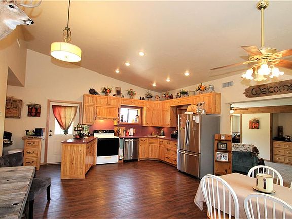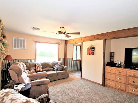 Looking for a place in the country yet under 3 miles to I-35? Take a look at this 3 bed/2 bath home on over 5 acres! Kitchen/dining features pecan cabinetry, breakfast bar and wood style flooring. Split floor plan. Property includes horse shelter, pole barn, a 30x20 steel bldg with concrete floor & separate work shop space, storm cellar, firepit & beautiful sunset views on a wooded lot. Fully fenced with cross-fenced pasture at rear of the property.