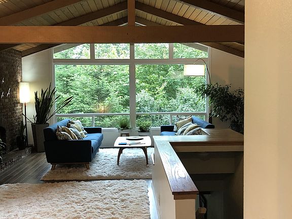 This beautiful country home has a cabin in the woods feel. You'll love coming home to the tranquility of the private setting. Recent updates include; new bamboo flooring, kitchen remodel w/quartz counters, updated main bathroom.Floor to ceiling windows overlooking the trees, den in daylight basement, decks on both levels,2 fire places,4th bedroom was built as a master with plumbing completed for a master bath, detached 2 car garage.