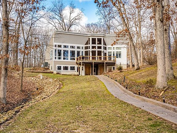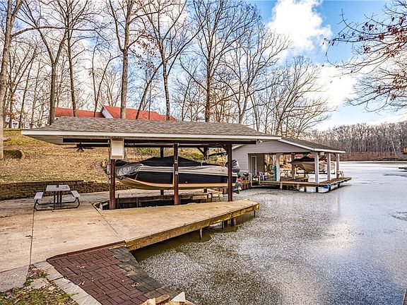 - Exterior Features: Wooded, Boat House, Dock, Lake Access, Lakeview, Water Frontage, Circle Drive, Deck